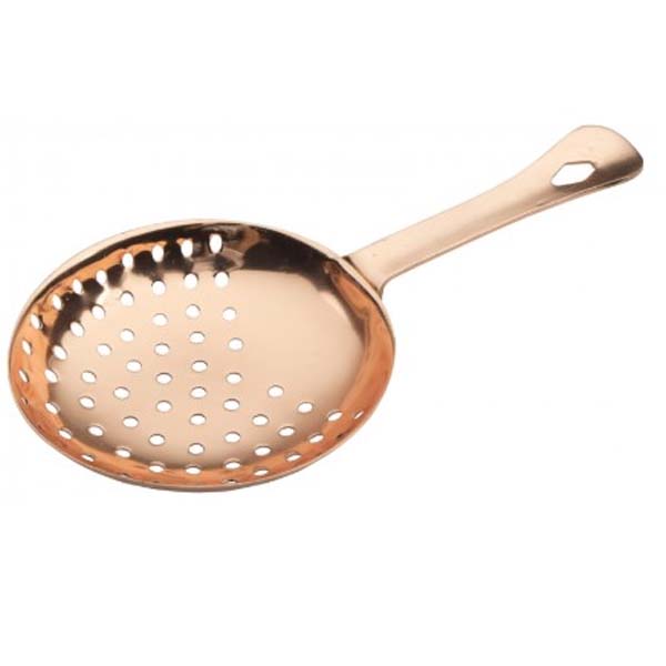 Questo colino Julep placcato in rame è progettato per filtrare facilmente dai bicchieri da miscelazione. La sua forma curva si adatta perfettamente al bordo, consentendo versamenti fluidi e controllati.